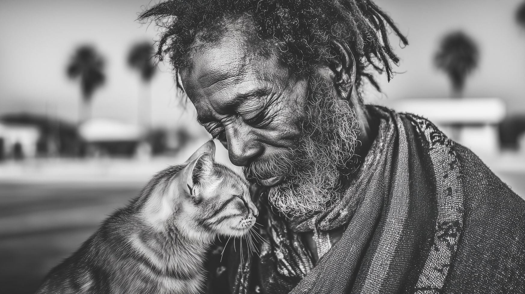 A je také dojemné, keď tí ľudia majú pri sebe malé psíča či krehké mačiatko. Delia sa s ním o svoju trošku jedla. Hrejú ho. Chovajú.
